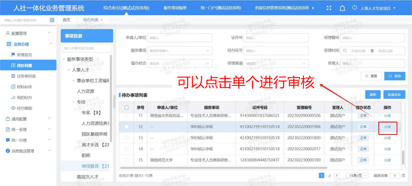 第1步:点击"人才人事"。第2步:点击"专业技术人员管理"。第3步:点击"继续教育"。第4步:点击"学时核认申报单位审核"。