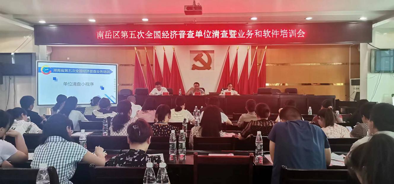 为确保第五次全国经济普查单位清查工作顺利推进,8月15日上午,南岳区经普办组织召开了第五次全国经济普查单位清查暨业务和软件培训会。南岳区五经普领导小组办公室主任、统计局局长谢小才出席会议并讲话,各乡镇(街道)分管领导、业务骨干以及各村(社区)普查员共60余人参加会议。