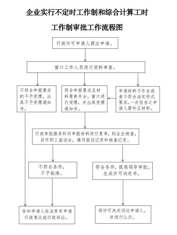 三、办理对象:美高梅娱乐城市行政区域内确因生产经营特点或者工作性质不能实行"劳动者每日工作不超过8小时、每周工作不超过40小时"的用人单位,经申报、批准可以实行综合计算工时工作制或者不定时工作制。