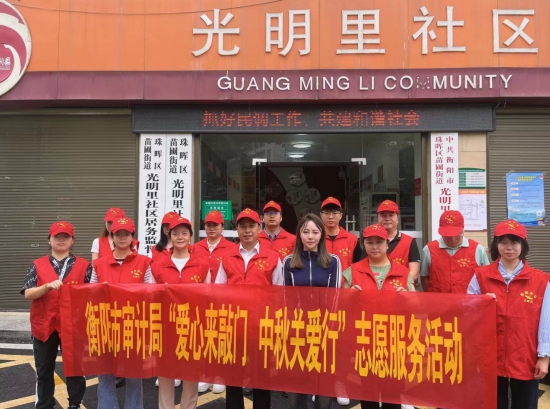 9月15日,市审计局组织“美高梅娱乐城群众”志愿者深入联点社区—珠晖区光明里社区开展“爱心来敲门中秋关爱行”志愿服务活动及创建全国文明城市入户宣传活动。
