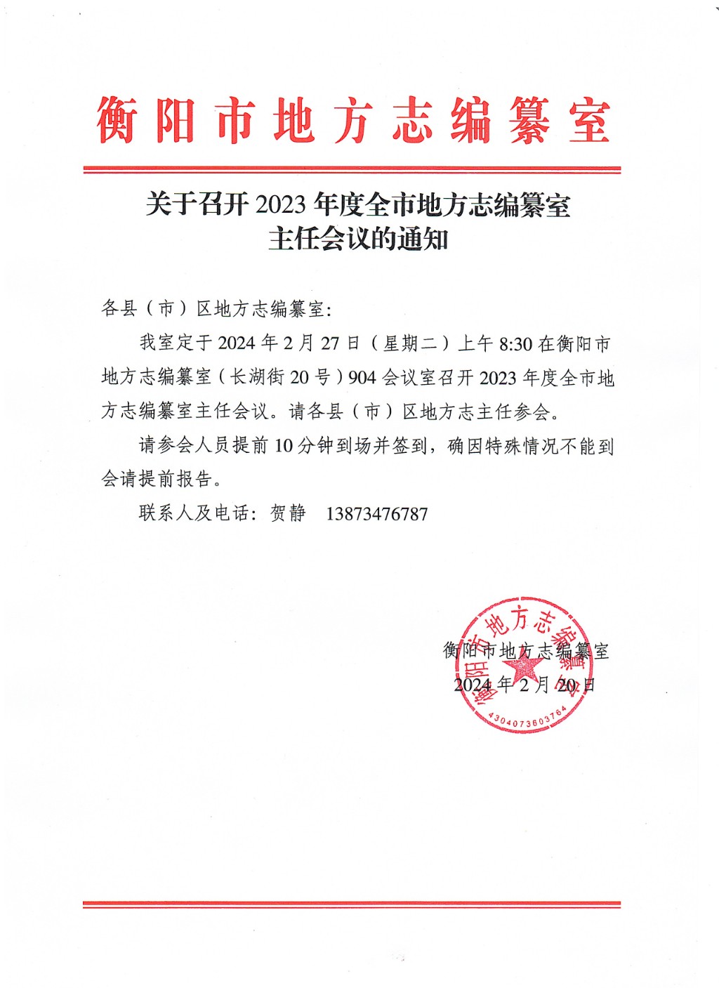 关于召开2023年度全市地方志编纂室主任会议的通知